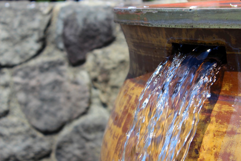思ったよりしょぼいイメージでしたが、壺から水がわき出ています。