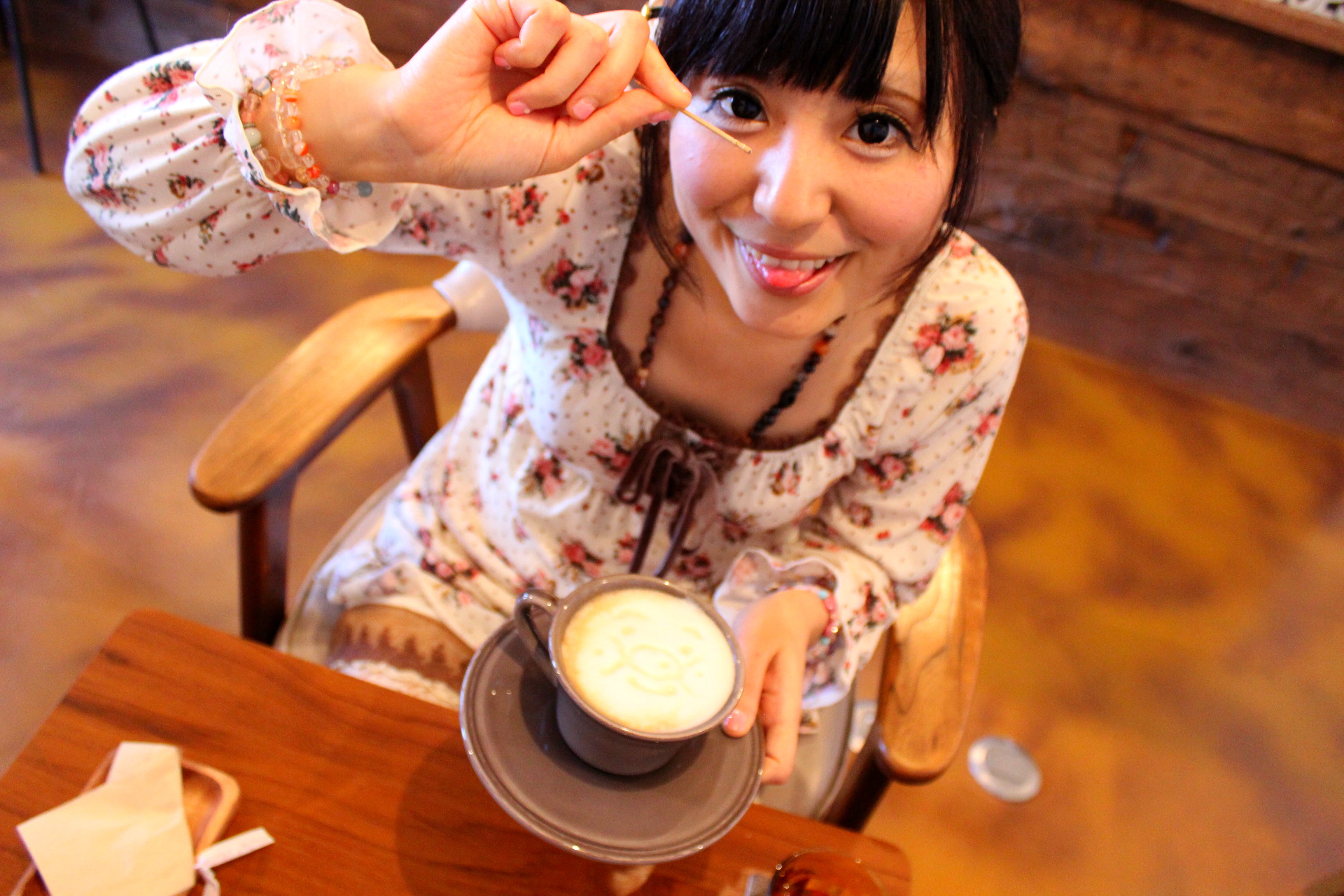 今度は、「クリームでヒゲを作る」という写真を撮ろうと、抹茶ラテを注文。