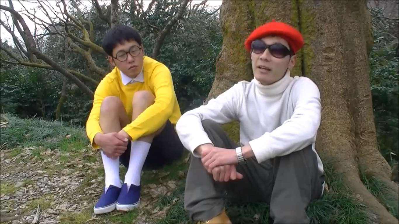 藤子不二雄両先生が、学生時代に漫画について二人で語り合った木の下に座らせてもらいました。