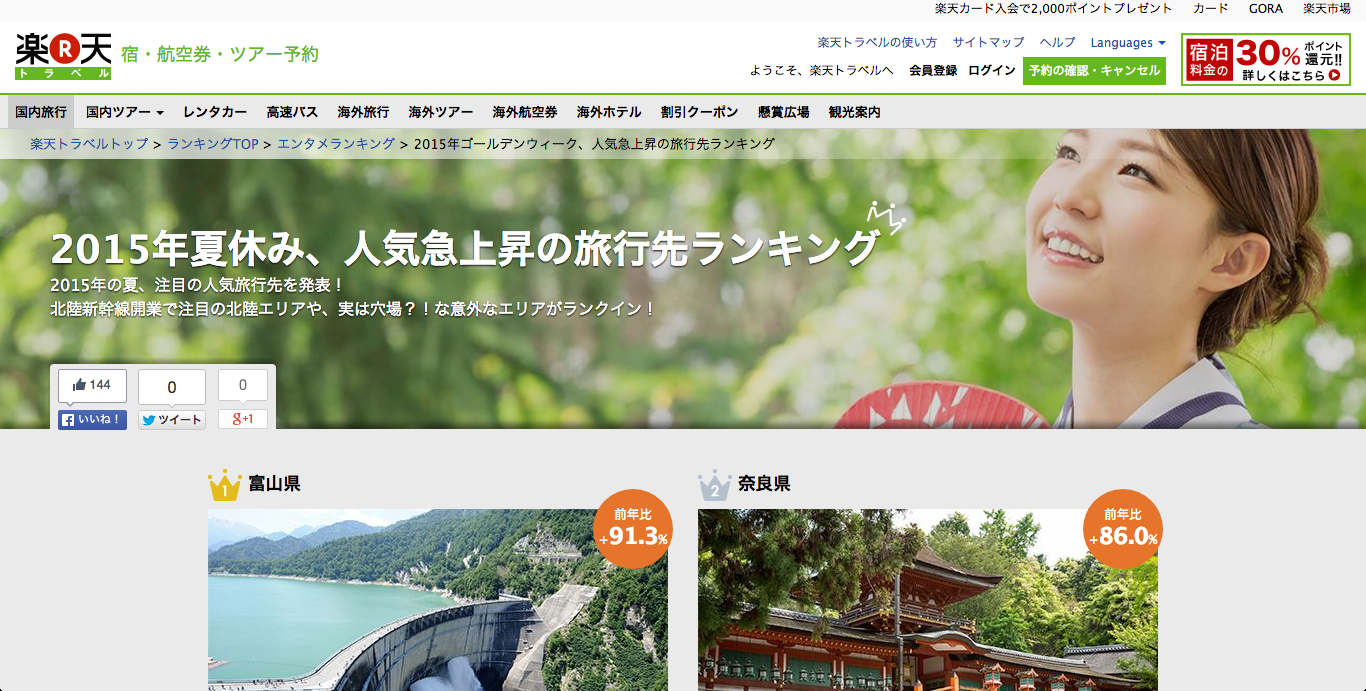 ということで、夏休みの予定なんて、線香花火を束にして一気に火をつけることしか予定のない人のために、旅行予約サイト「楽天トラベル」が調査した「2015年夏休み、人気急上昇の旅行先ランキング」をご紹介!