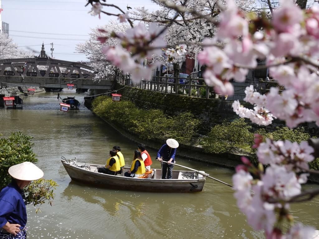 ゆらゆら船頭さんの手漕ぎの天馬船で、川の両側の満開の桜を見ていきましょう!