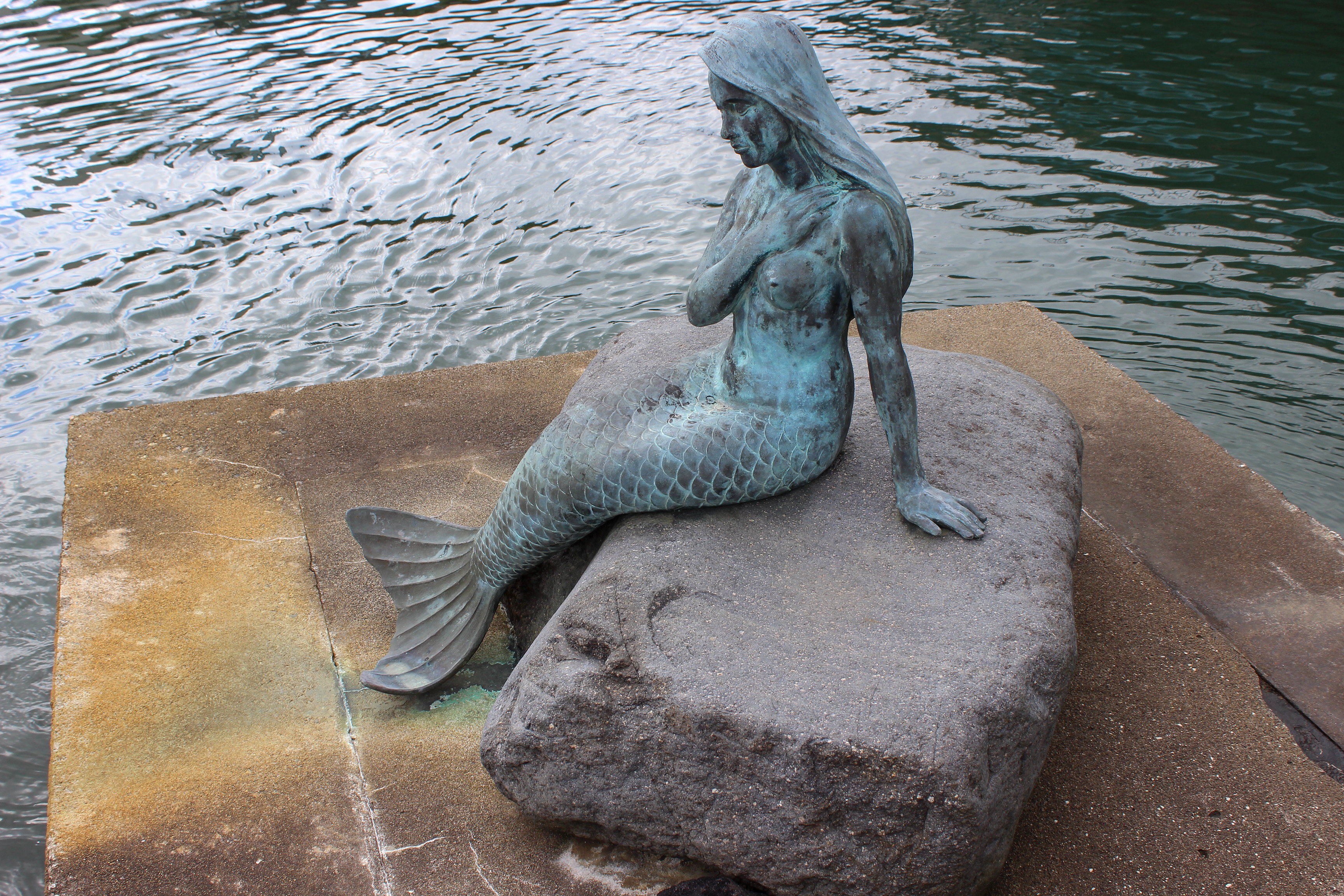 一見、ただの港町のような雰囲気ですが、なぜかここに人魚の銅像があります。