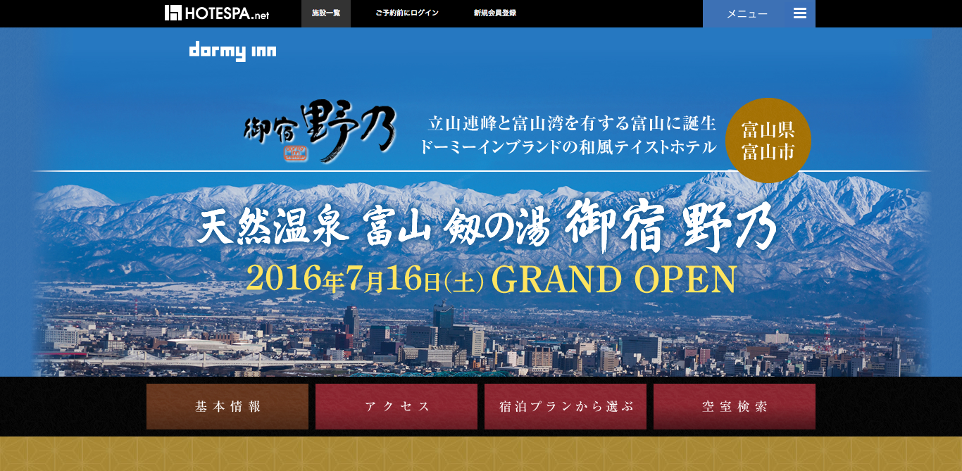 突然ですがみなさんは、富山県の総曲輪西地区の一角にあるビジネスホテル「天然温泉 富山 劔の湯 御宿 野乃」をご存知だろうか?