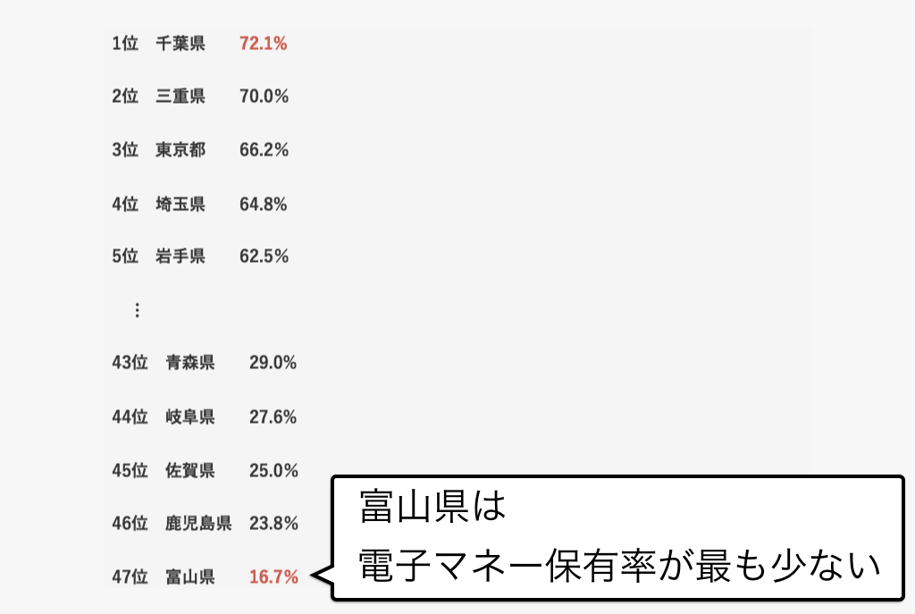 そんな電子マネーですが、なんと富山県は全国で最も電子マネーを使用していないそうなのです。