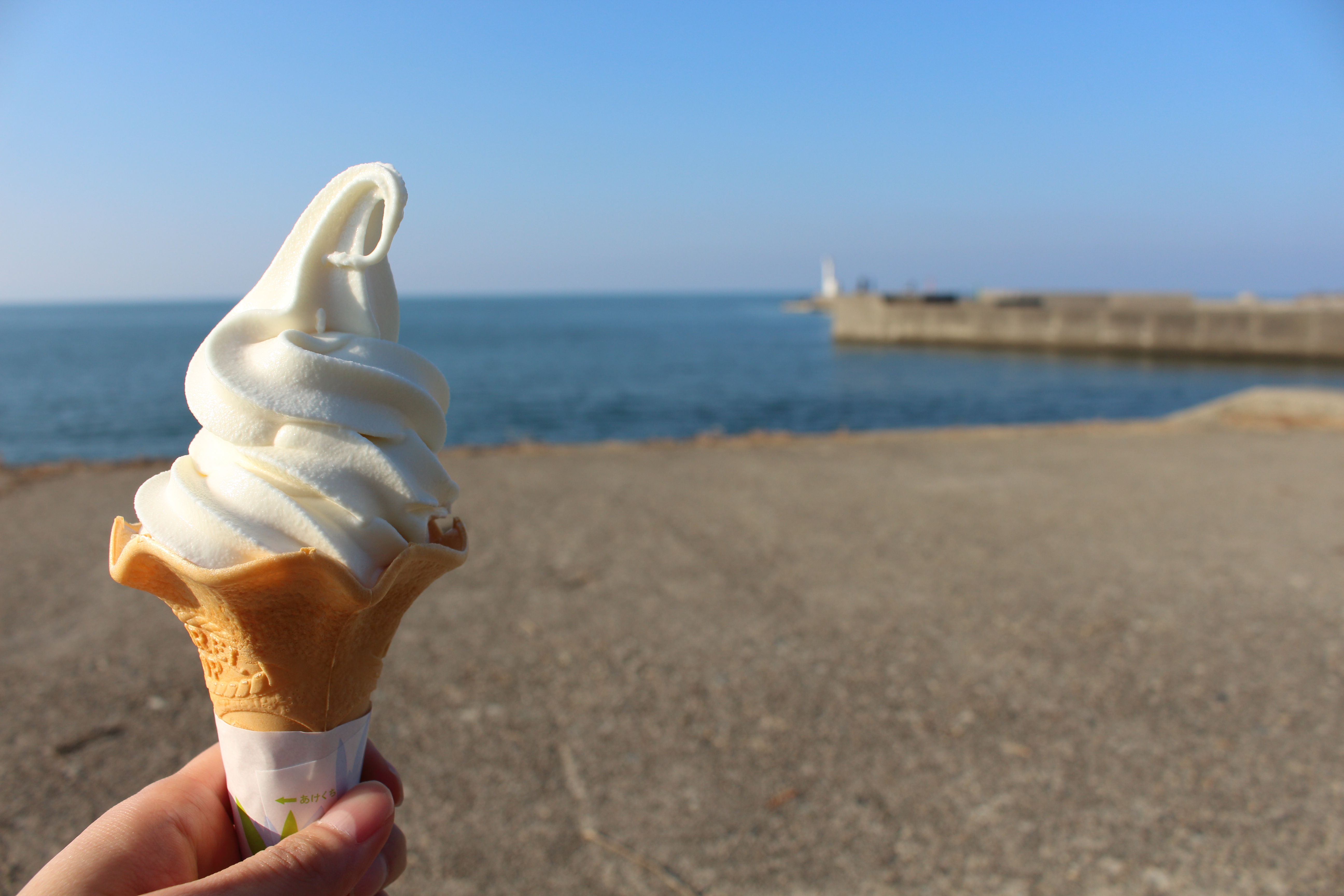 ぜひみなさんも、ほたるいかミュージアムに行った後に、ほたるいかを食べてからソフトクリームを買って海に来てみてください。