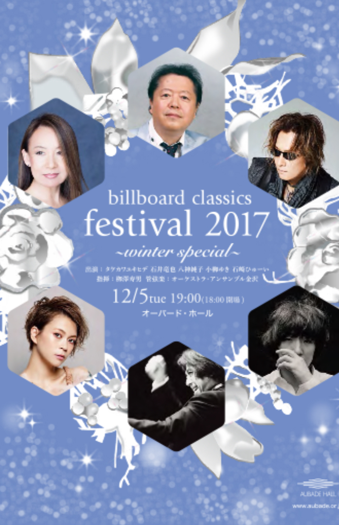 そのコンサートが、2017年12月5日に【billboard classics festival 2017 ~winter special~】として富山オーバード・ホールで開催されます。