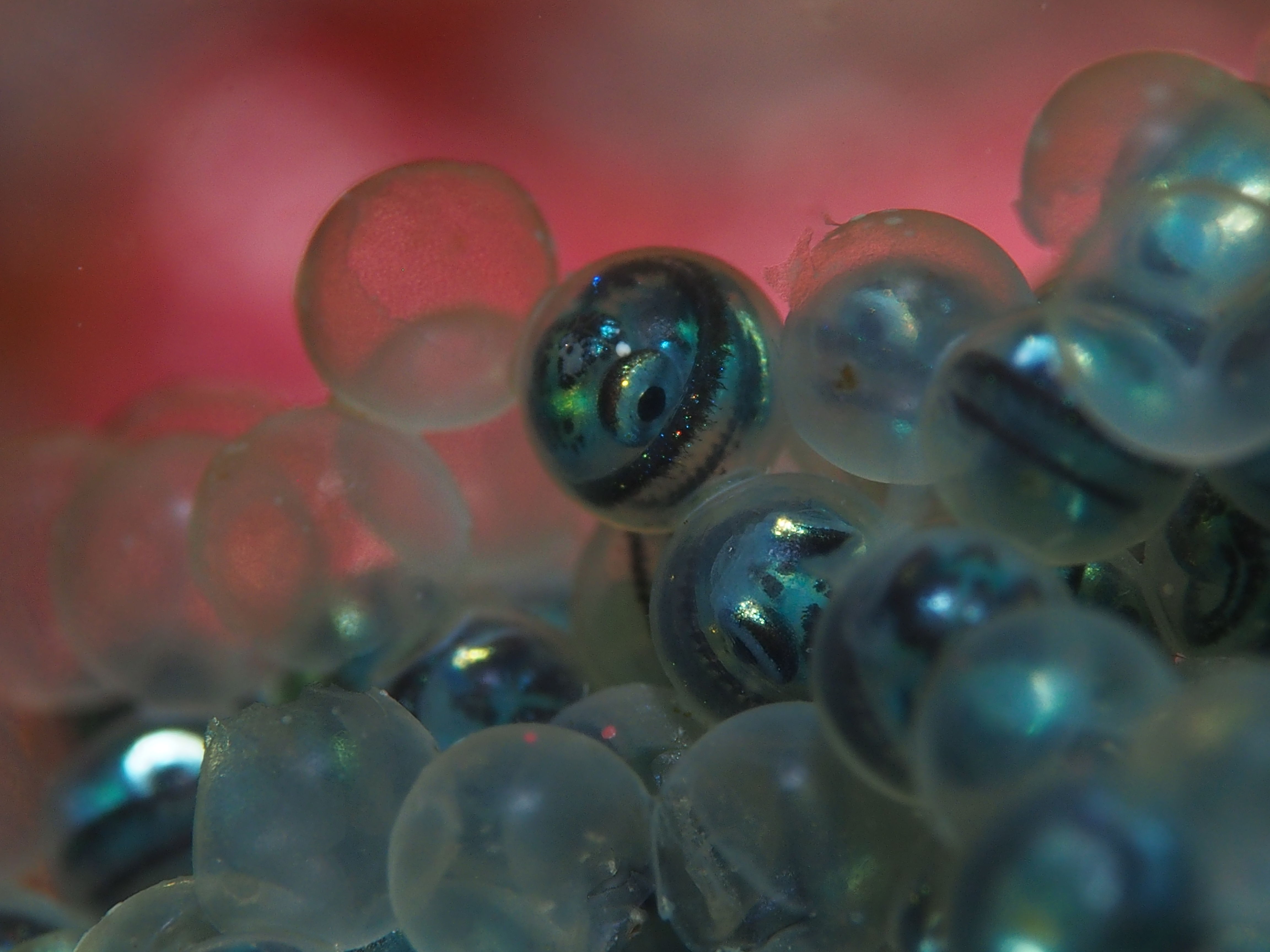 卵の中には、すでに小さなアイナメの赤ちゃんがたくさんいました。