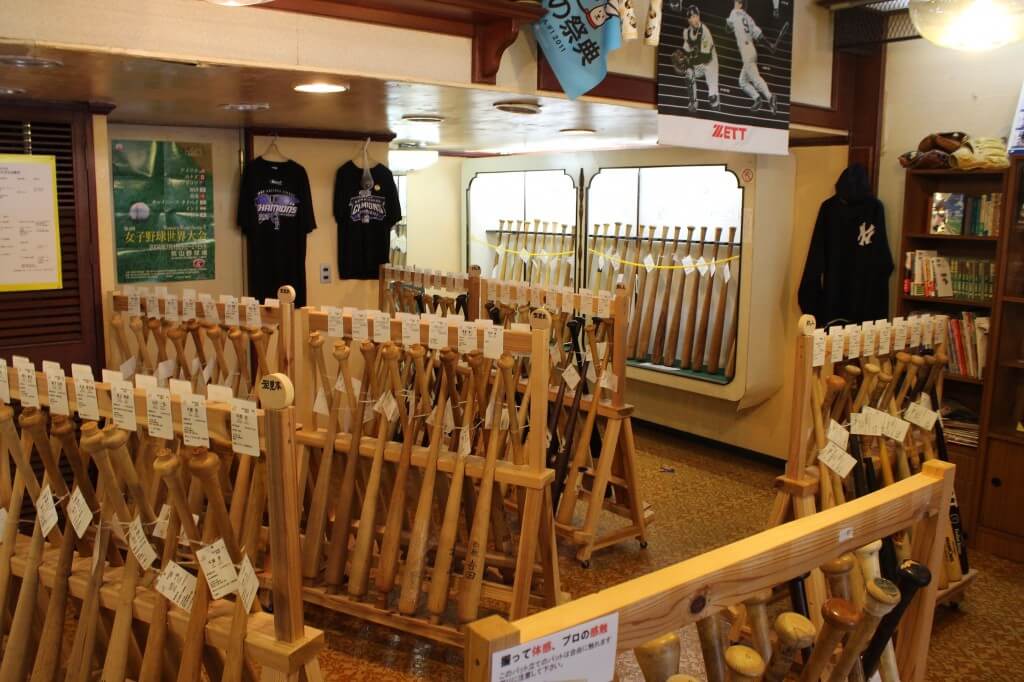 現役のプロ野球選手のバットを約500本展示してあり、一部は実際に握ってプロの選手の感触を味わうことが出来ます。