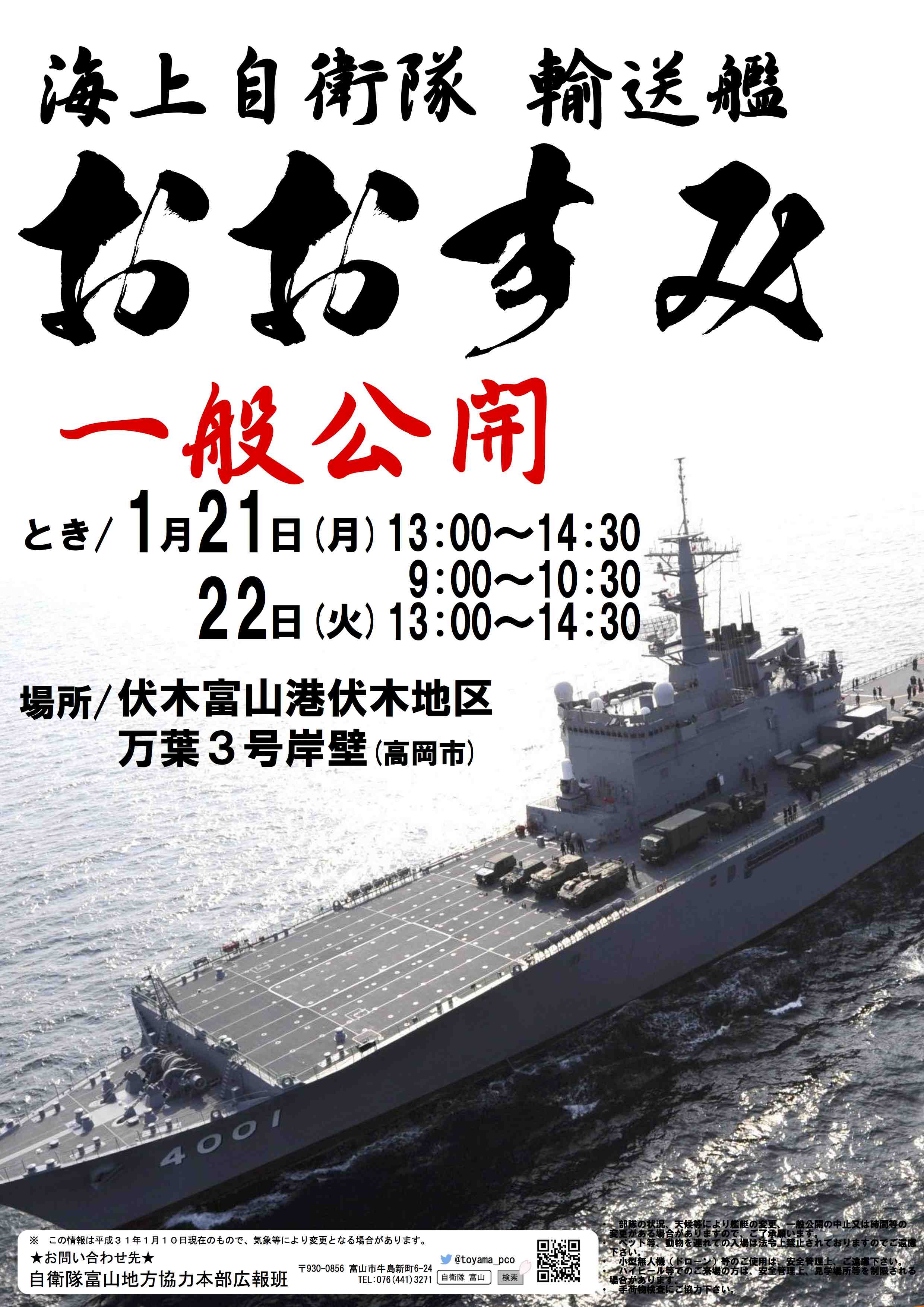・部隊の状況、当日の天候等により艦艇の変更、一般公開の中止又は時間の変更がある場合がありますので、ご了承願います。