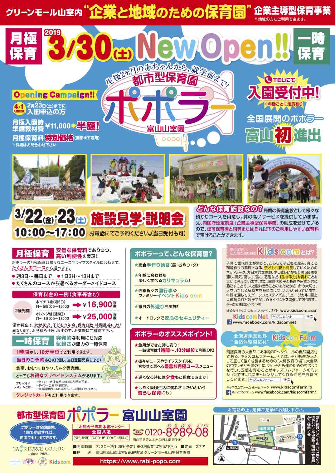 都市型保育園ポポラー富山山室園が3月30日にオープンします。