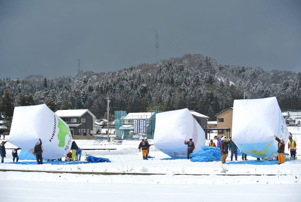 ふくみつ雪あかり祭りは、南砺市で約50基の巨大紙風船が冬空に高く浮かびあがるイベントです。