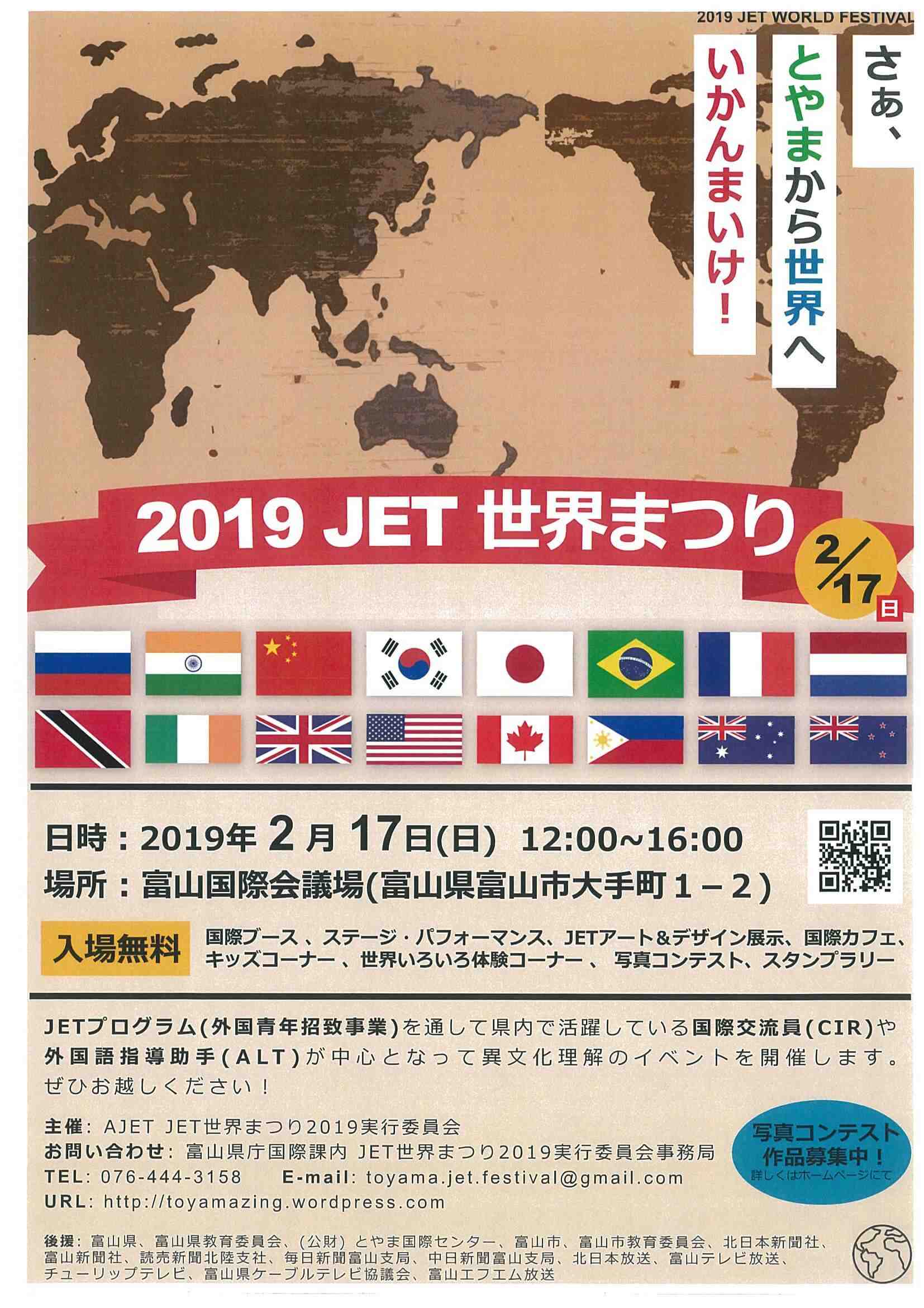 JET世界まつり2019が富山国際会議場で2月17日(日)開催されます。