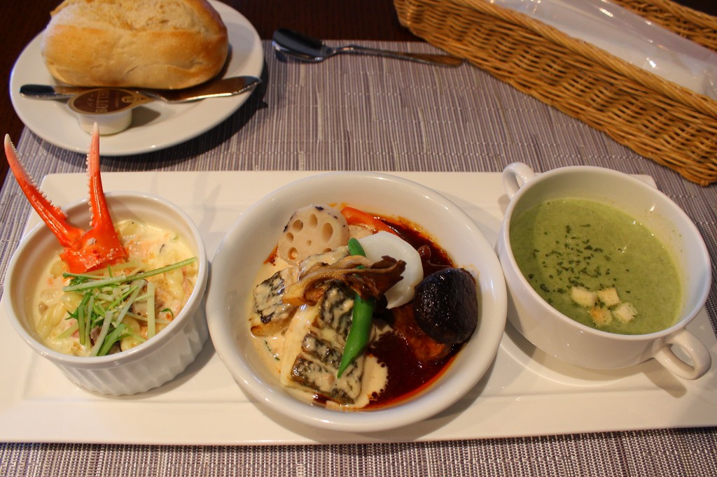 カニ、魚、肉といろんな素材を食べることができる贅沢なランチです。