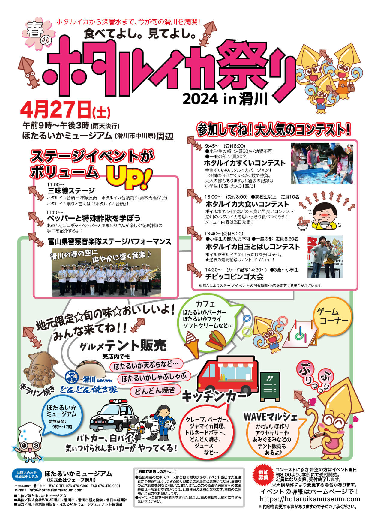 ホタルイカ祭り in 滑川は、旬のホタルイカがとことん楽しめる滑川市の春祭りです。