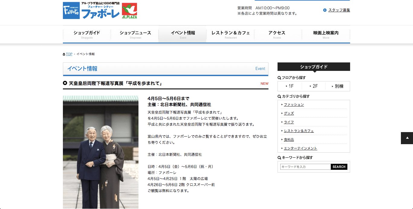 天皇皇后両陛下報道写真展「平成を歩まれて」がファボーレにて開催されます。