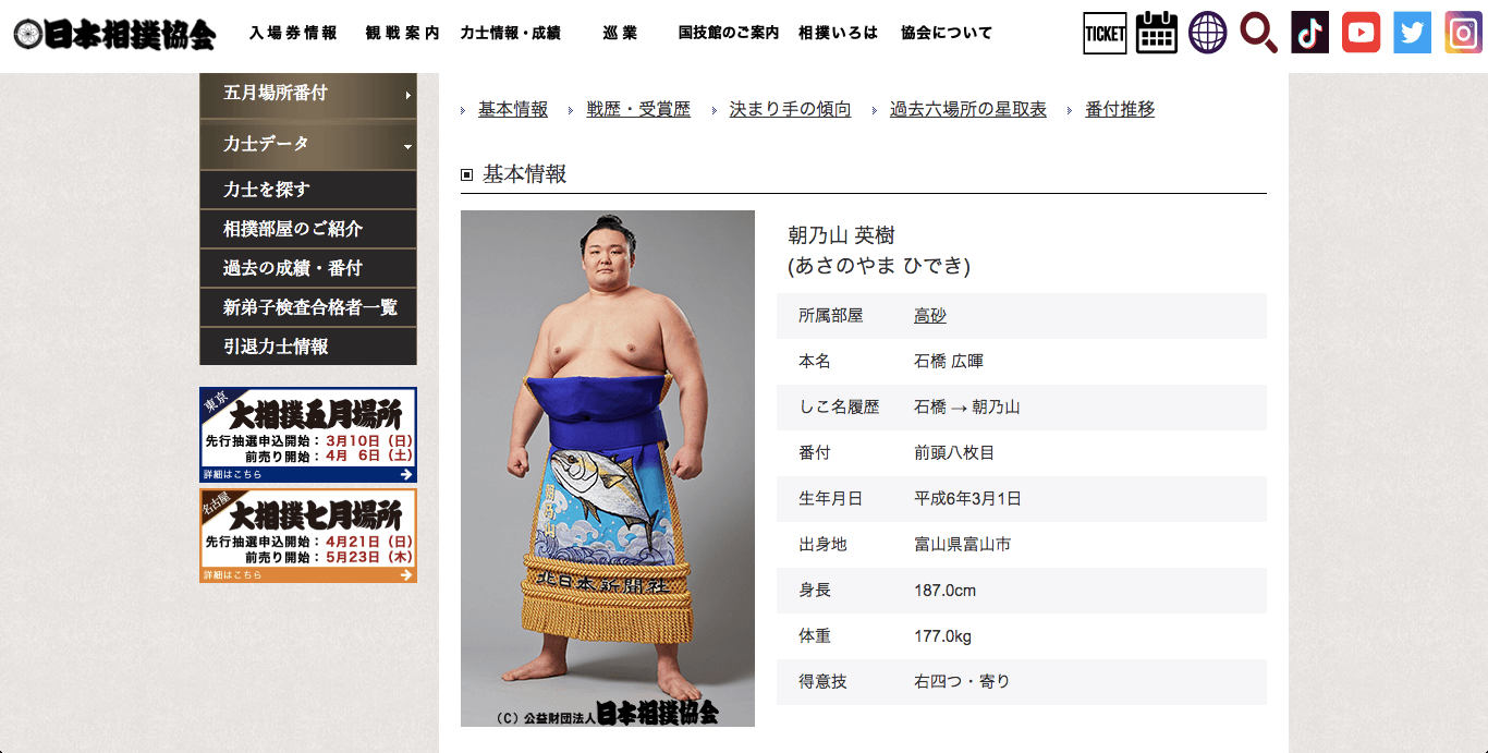 西8枚目。本名石橋広暉、富山県出身、高砂部屋。