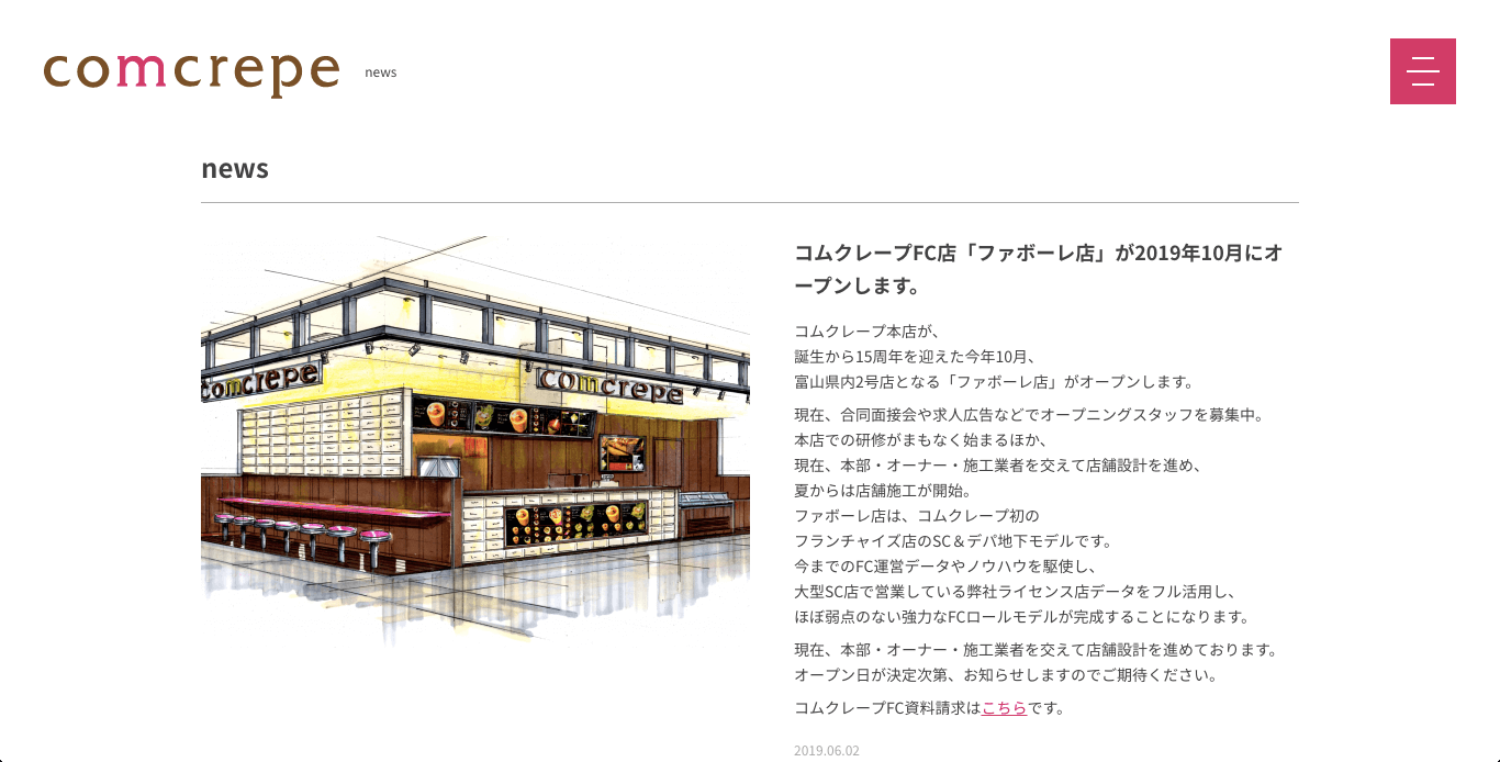 富山県内2号店となる「コムクレープ ファボーレ店」が10月にオープン予定です。
