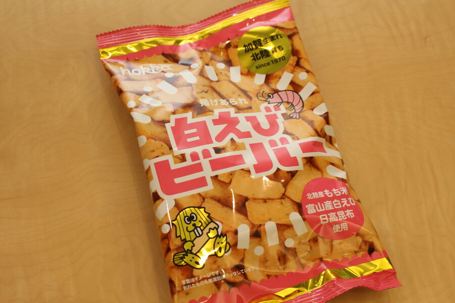 ホッカこと北陸製菓株式会社から発売されている「白えびビーバー」とは、名前通り「富山県産の白えび」「北陸産のもち米」 をメインにした塩味ベースのお菓子です。