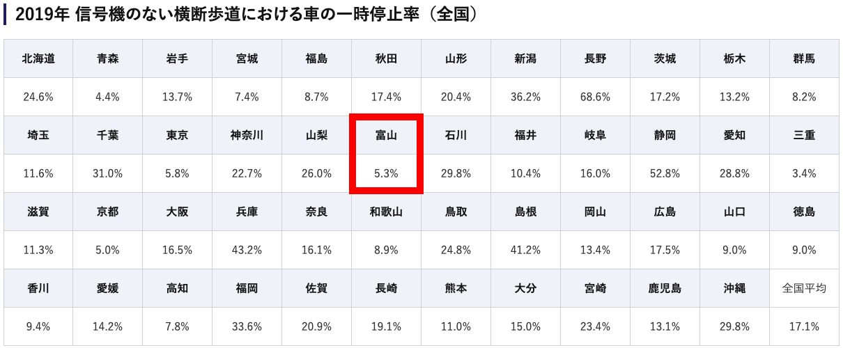 富山県民よ、もっと歩行者優先の運転を心がけましょう。