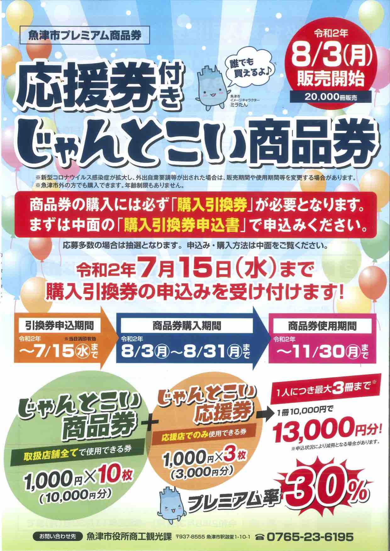 購入方法は、購入引換券申込書を7月15日(水)までに魚津市商工観光課へ提出することでゲットできます。