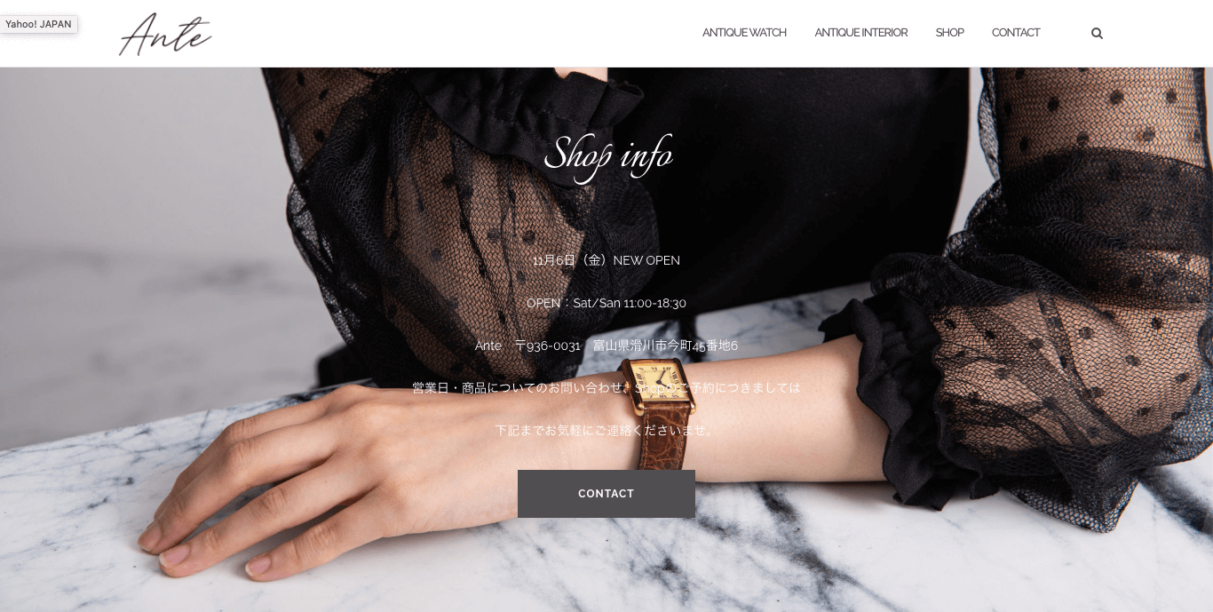 ヴィンテージ・アンティーク時計専門店 Anteが11月6日にオープン予定です。