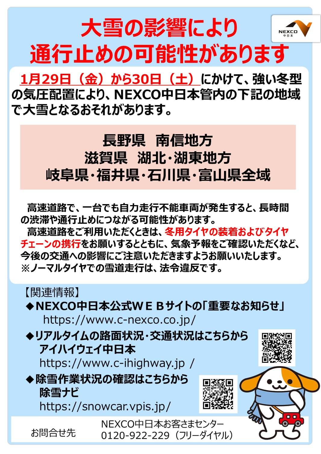 降雪の状況によっては、高速道路の通行止めを実施する可能性がありますので、気象予測をご確認いただくなど、今後の交通への影響にご注意いただきますようお願いします。