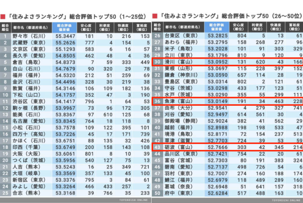 とはいえ、これだけ全国に市町村がある中、富山県の都市が入っているのはすごいですね。