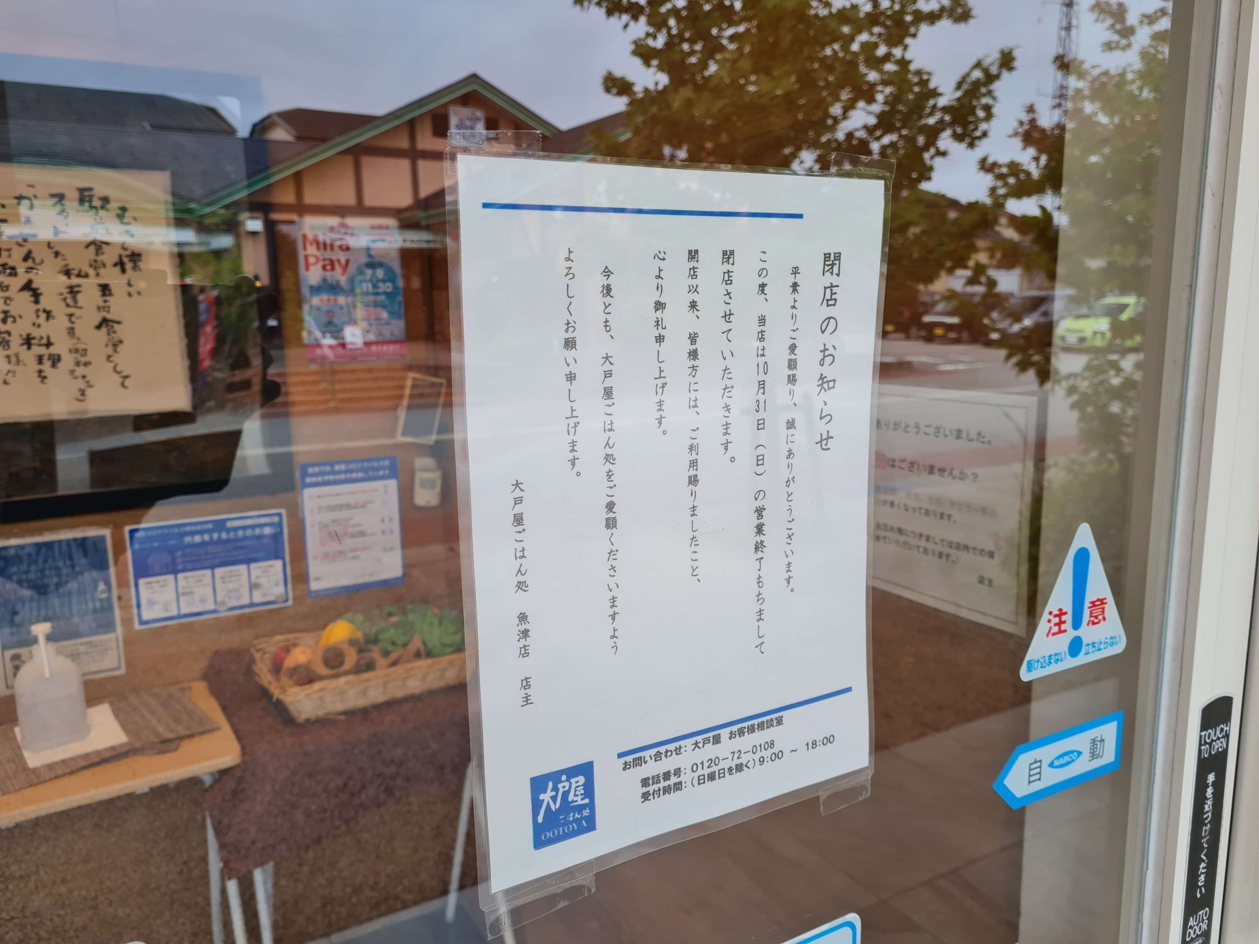 大戸屋ごはん処 魚津店が10月31日に閉店予定です。