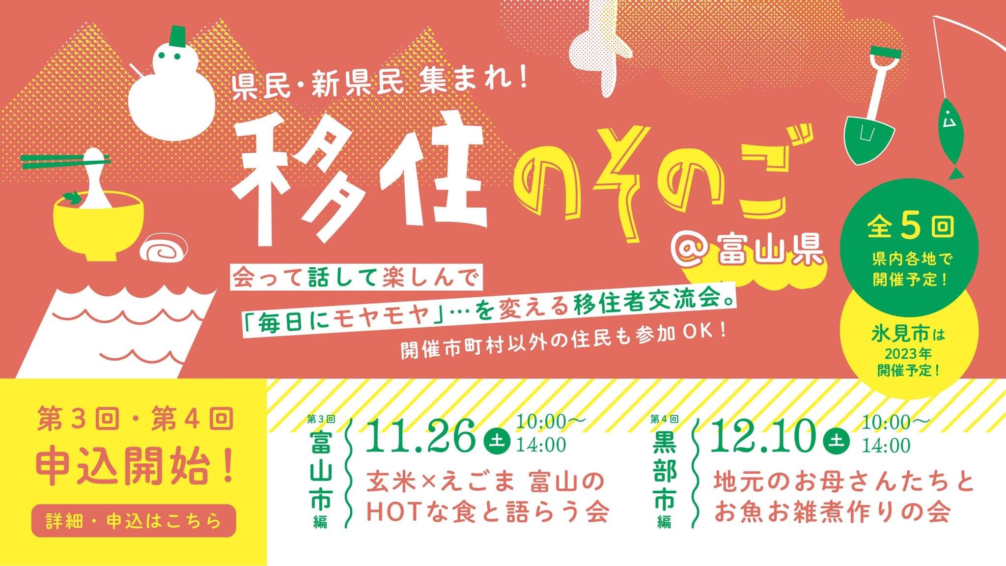 第3回富山市編申し込みは11/20㈰まで、第4回黒部市編が12月4日㈰まで(どちらも先着順!)