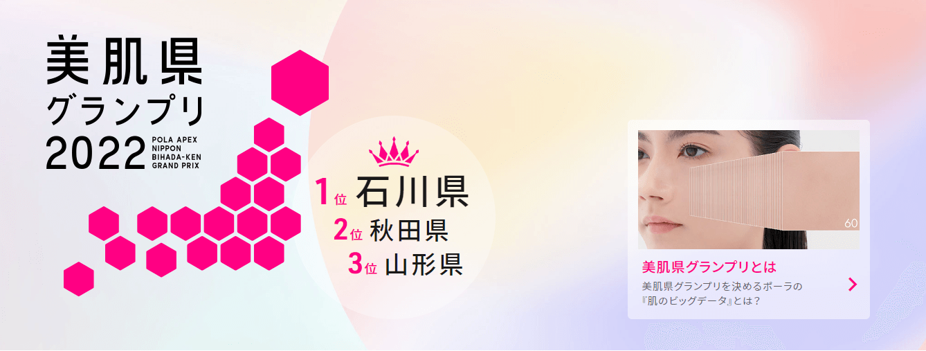 POLA美肌県グランプリは、株式会社ポーラが毎年日本で1番美しい肌を持つ県をランキング形式にして発表しているもの。