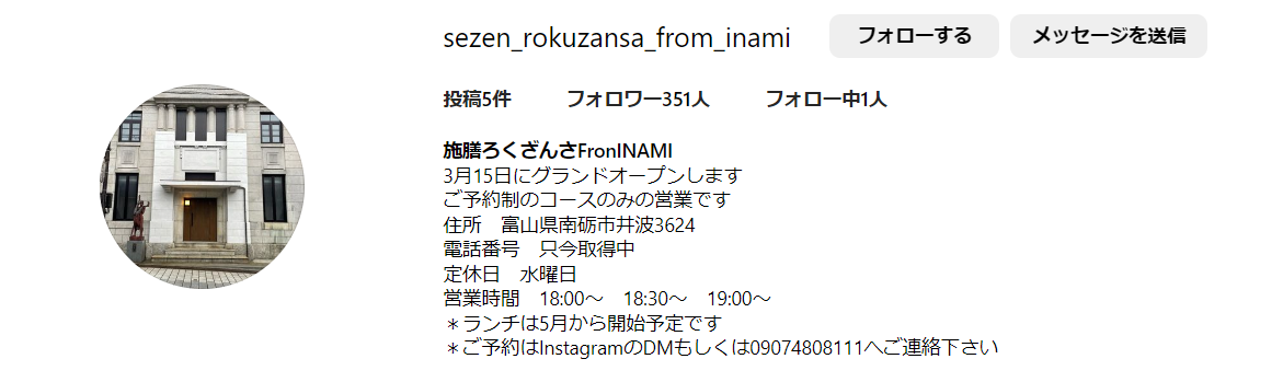 施膳ろくざんさが3月15日にオープン予定です。