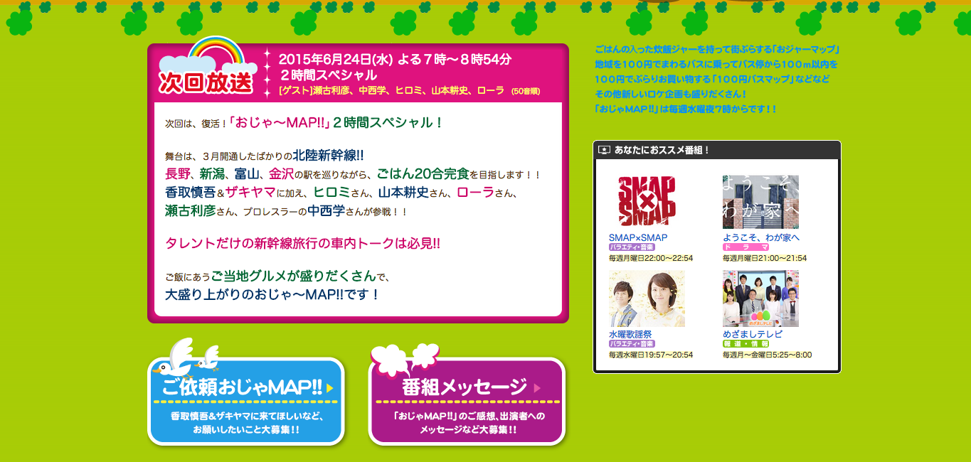 おじゃMAP!!に富山県!北陸新幹線特集で2時間スペシャル